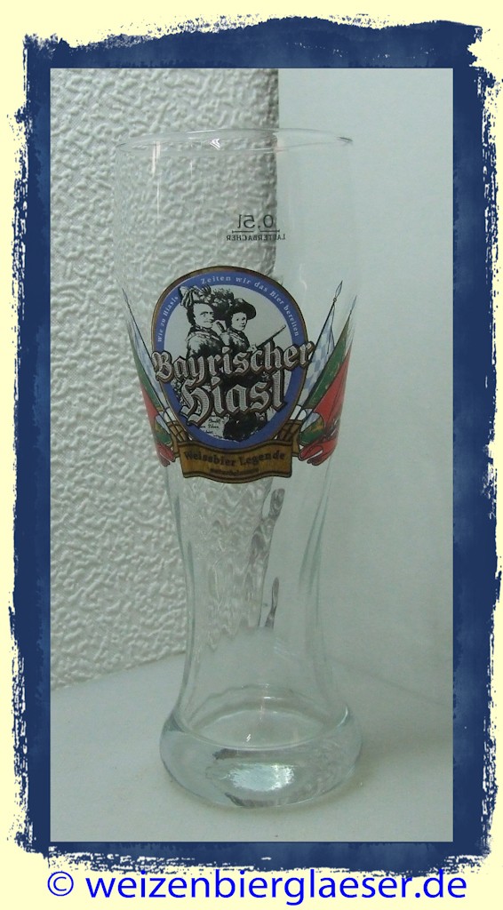 | Weizenbierglas 0,5 l Weissbierlegende "Hiasl" Hersteller: ? Eichung: Lauterbacher | ||